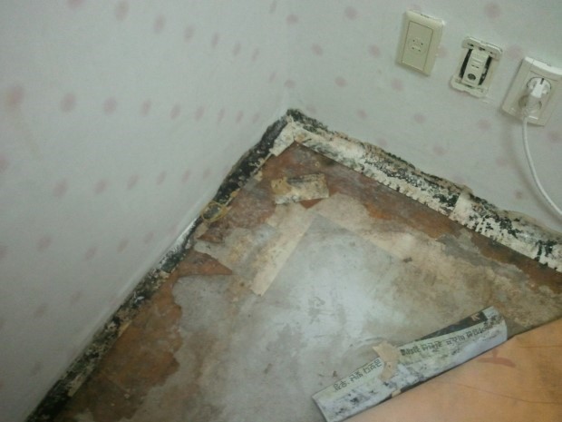 - 곰팡이 제거제를 곰팡이가 발생한 벽지 위치에 뿌립니다. 그리고 브러시로 문질러 곰팡이를 제거합니다.